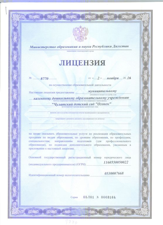 | Полное наименование образовательной организации* | Муниципальное казенное дошкольное образовательное учреждение "Чулатский детский сад"Огонек" |